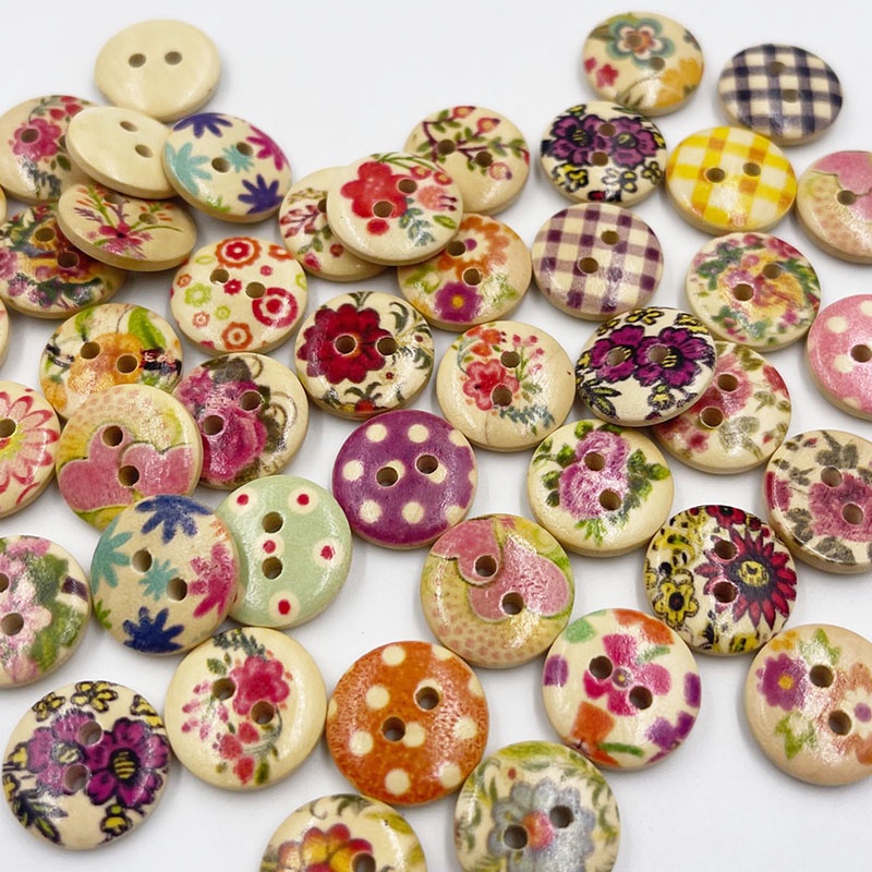 100 Pçs Café Impressão Flores Botões De Madeira Redondos Costura Scrapbook Para Roupas Artesanato Handwork DIY 15mm WB84