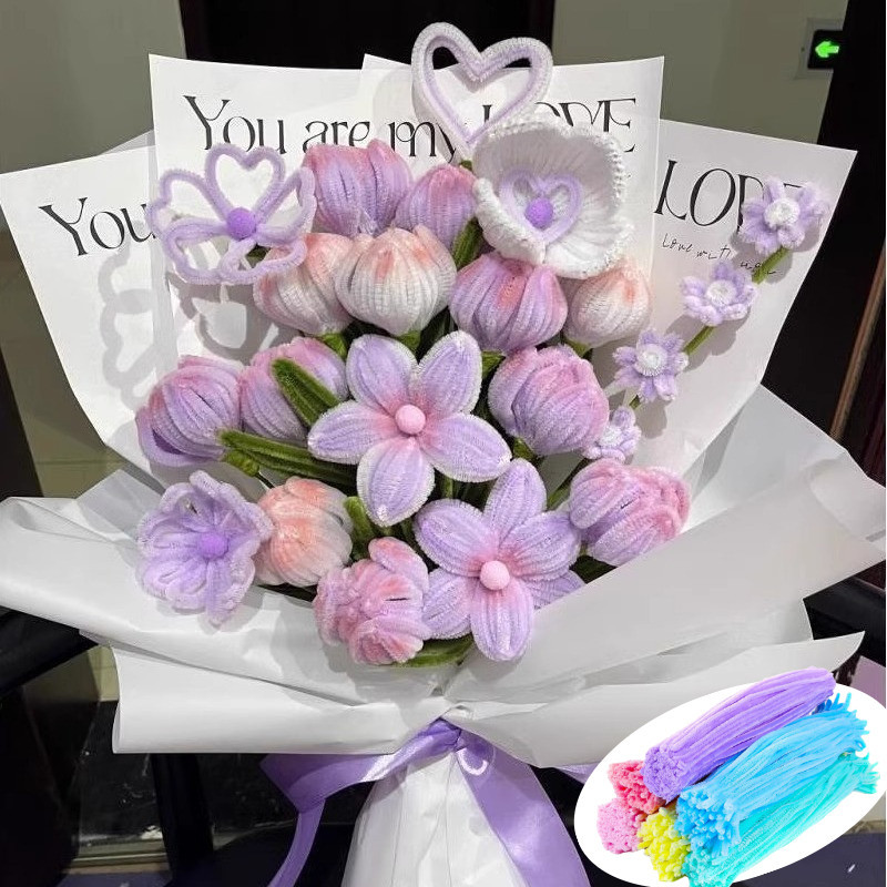 100 Pçs Multicolorido Fio Fuzzy Flor Chenille Hastes Limpador De Tubulação , Vara Torcida Densa Raiz De Cabelo Artesanal