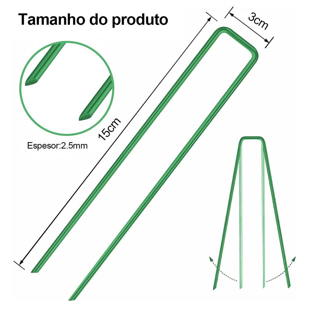100 Peças verde Grampo Gancho Presilha para fixação de Grama Sintética ganchos de fixação para jardinagem