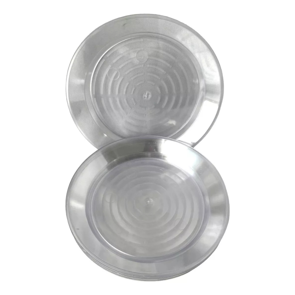 100 Prato Acrílico Refeição 22cm Descartável Festa Cristal Acrilico