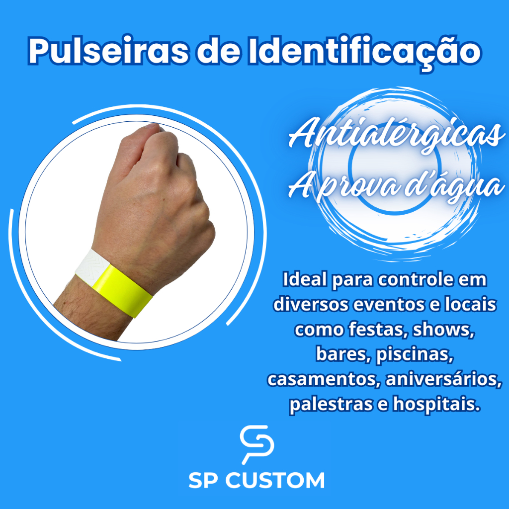 100 Pulseiras de Identificação para Festa Bar Balada Evento Aniversário Hospital