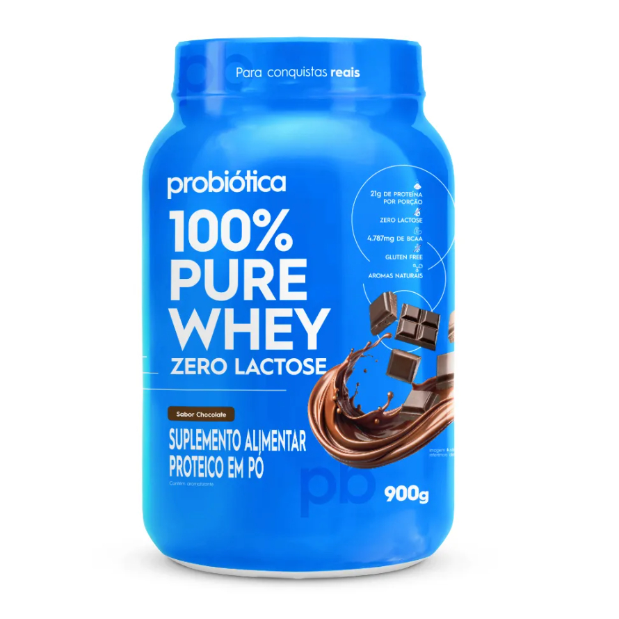 100% Pure Whey Zero Lactose 900g Suplemento Alimentar Proteico Linha 100% Pure Whey Probiotica