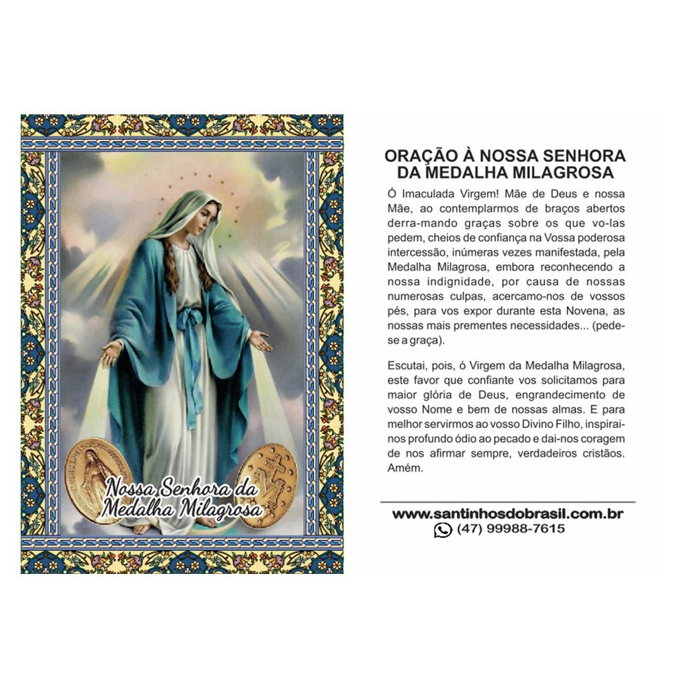 | 100 Santinho N S Sra Nossa Senhora da Medalha Milagrosa Cento (oraç... este produto | R$ 24,90 | — | 5.0/5 | — |