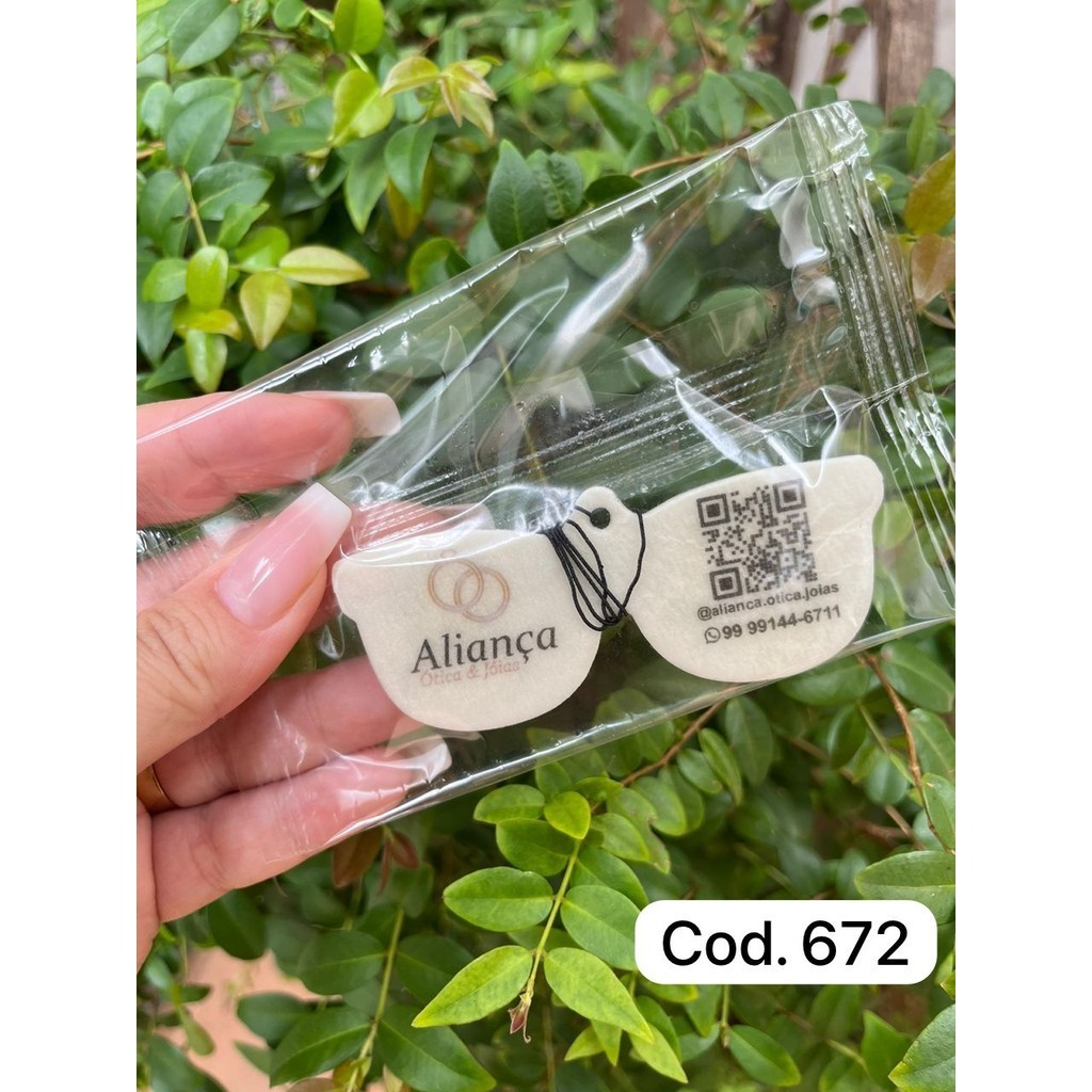 # ESTE ANÚNCIO NÃO E NO CORTE A LASER , CASO O CLIENTE OPTE POR FAZER EM ALGUM MODELO QUE NAO ESTEJA CITADO NESTE ANÚNCIO SERÁ COBRADO O ADICIONAL DO CORTE A LASER! AROMATIZANTES PERSONALIZADOS, CHEIRINHOS PARA RETROVISORES - CORDINHA QUE ESTIQUE PARA COLOCAR E RETIRAR SEM O RISCO DE DANIFICAR O RETROVISOR DO VEICULO - IMPRESSÃO DIGITAL FRENTE E VERSO DO PRODUTO - TAMANHO ATE 6,5X6,5 CM - MAIS DE 50 MODELOS DISPONÍVEIS - DURAÇÃO DO AROMA DE 15 DIAS ( INCLUI ALGUNS FATORES DE USO ) - EMBALADOS INDIVIDUALMENTE COMO FUNCIONA APOS A COMPRA * APOS A COMPRA NOS ENVIE NO CHAT A IMAGEM DA LOGO E AS INFORMACOES QUE VC QUER COLOCAR NO AROMATIZANTE. ENVIAREMOS O CATALAGO E AROMAS DISPONÍVEIS * APOS A ESCOLHA DO MODELO, INICIAMOS A ELABORAÇÃO DA ARTE GRÁFICA E ENVIAMOS PELO CHAT DA PLATAFORMA PARA APROVAÇÃO DO CLIENTE, APOS APROVADO INICIAMOS A PRODUÇÃO. - TEMPO DE PREPARO DE 12 A 18 DIAS UTEIS - + 18 AROMAS DISPONÍVEIS OBSERVASAO IMPORTANTE OBSERVASAO IMPORTANTE * ALGUMAS FRAGANCIAS PODEM SOFRER OXIDACAO DEIXANDO O AROMATIZANTE COM ASPECTO AMARELADO. ISSO OCORRE PELO FATO DE SER UM PRODUTO NATURAL. NESTE CASSO NÃO NOS RESPONSABILIZAMOS, NÃO REFAZEMOS O PRODUTO E NÃO FAZEMOS TROCA, POIS NÃO ESTÁ AO NOSSO ALCANCE PREVER QUAL AROMA VAI SOFRER OXIDACAO. *CONFIRA TODOS OS DADOS QUANDO ENVIAMOS O LAYOUT, NÃO NOS REPONSABILIZAMOS POR ERROS ORTOGRAFICOS ENVIADO E APROVADO PELO CLIENTE.