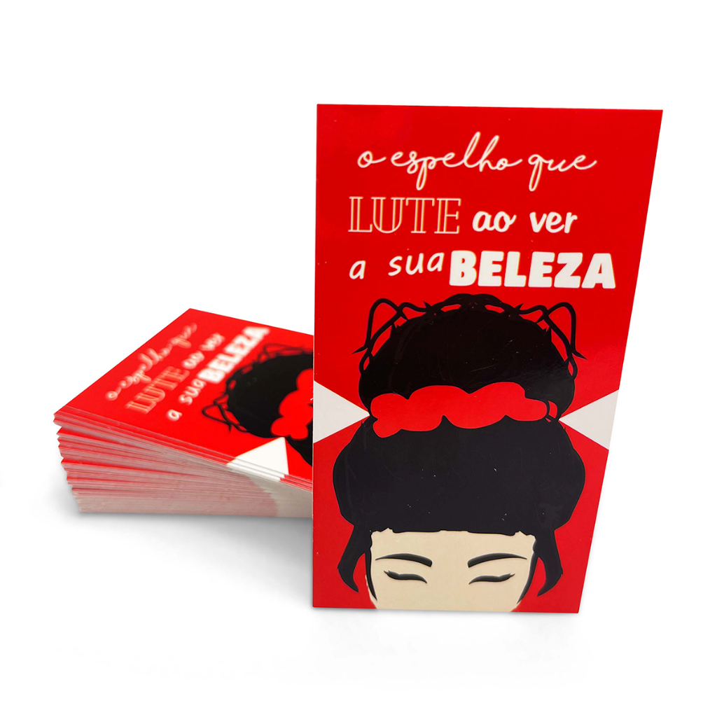 Aqui você encontra qualidade e ENTREGAMOS EM TEMPO RECORDE!, **INFORMAÇÕES TÉCNICAS** - Material: Couchê brilho 250g - Formato: 4,8x8,8 cm - Cores: 4x4 Colorido Frente - Acabamento: Corte reto - Quantidade: 100 Um mimo especial para SEU CLIENTE Surpreenda seus clientes com um toque de carinho! Nosso cartão mimo foi feito com todo cuidado para acomodar os elásticos de cabelo de forma prática e charmosa. Com marcação de corte para facilitar o preparo do cartão e o encaixe dos elásticos, ele valoriza seus produtos e deixa a experiência do cliente ainda mais especial!