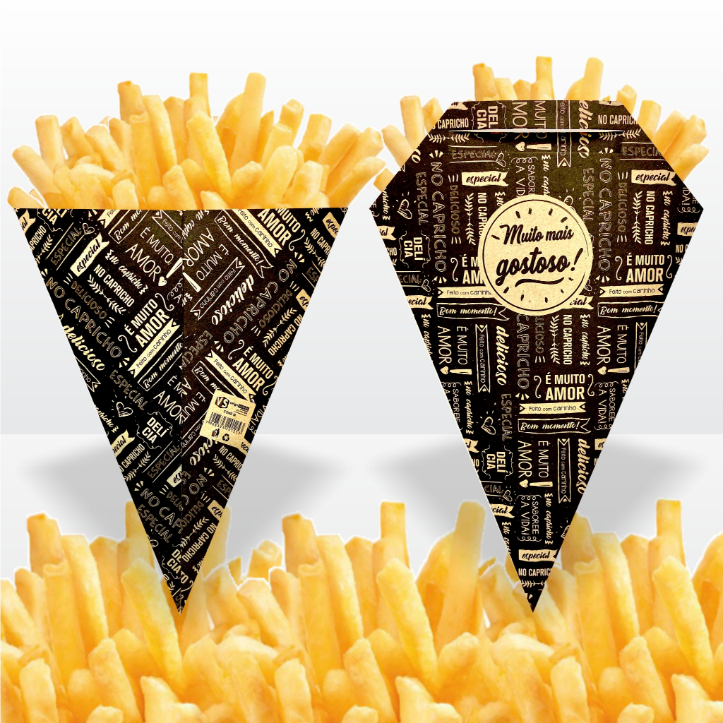 | 100 Unid Cone Para Batata Frita rústica Porção com porta molho. Cx... este produto | R$ 54,65 | — | 4.8/5 | 140 |