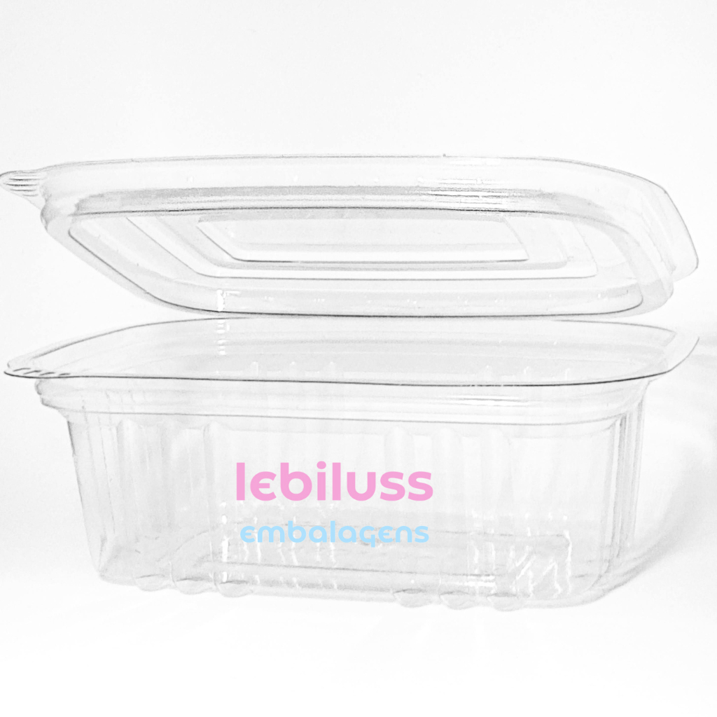 100 Unid Embalagem Pote Retangular 250ml com Tampa Articulada Modelo 88