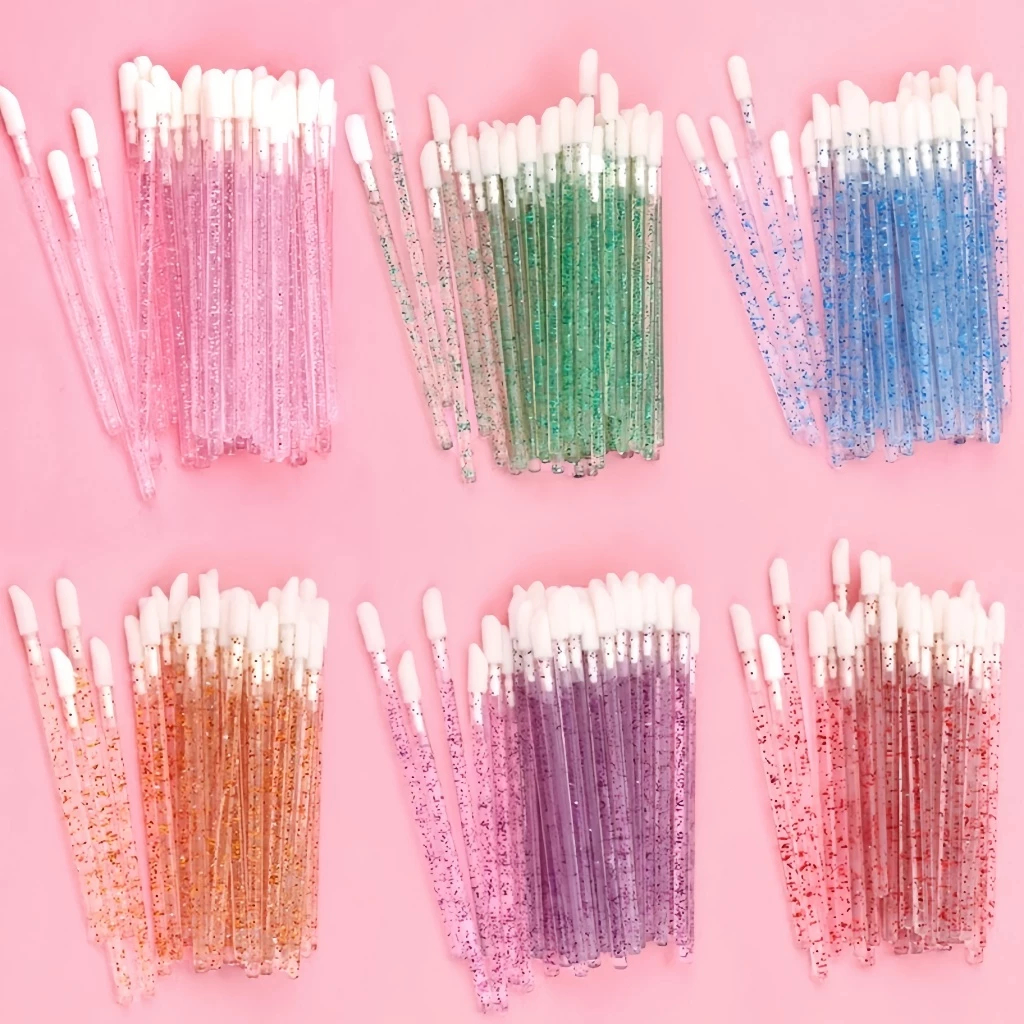 100 Unidades Anel Batoque + Kit 50 Escovinhas + Kit 50 Aplicador de Batom Extensão de Cílios