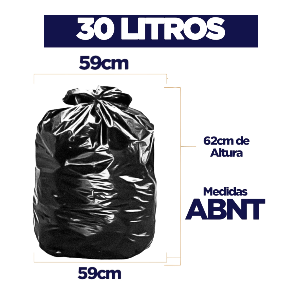 100 unidades saco de Lixo 30 Litros pacote 1kg Características do Produto: NOSSO SACO DE LIXO TEM O FECHAMENTO NA LATERAL OQUE FAZ COM QUE A MESMA MEDIDA DA BOCA SEJA A DO FUNDO, ISSO FAZ COM QUE VC NÃO PERCA NENHUM ESPAÇO DE USO! Verifique se o da concorrência também é assim antes de comprar! Capacidades Disponíveis: 30 Litros Cor: Preto Composição: Polietileno de baixa densidade e pigmento. Padrão: Sacos de 30 litros segue as normas da ABNT (Associação Brasileira de Normas Técnicas). Indicação de Uso: Uso doméstico, condomínios, hotéis, pousadas, empresas, restaurantes, comércios em geral, entre outros. Quantidade por Pacote: 100 unidades 1kg Origem: Produto de fabricação Descrição: Os Sacos de Lixo Preto Resistente são ideais para diversas aplicações, desde o uso doméstico até em estabelecimentos comerciais e industriais. Fabricados com polietileno de baixa densidade e pigmento, garantem resistência e durabilidade. Tamanhos Disponíveis: 15 Litros 20 Litros 30 Litros (Padrão ABNT) 40 Litros 50 Litros (Padrão ABNT) 60 Litros 100 Litros Vantagens: Padrão ABNT: Os sacos de 30 e 50 litros seguem as normas da ABNT, garantindo a qualidade e adequação às especificações técnicas. Direto da Fábrica: Ao comprar diretamente da fábrica, você assegura o melhor preço e a melhor qualidade. Grande Quantidade em Estoque: Produtos em grande quantidade disponíveis no estoque, facilitando o atendimento de pedidos de todos os tamanhos. Seja Nosso Distribuidor: A oportunidade de se tornar um distribuidor direto da fábrica. Observação: Certifique-se de conferir as medidas corretas antes de comprar, garantindo que o saco de lixo atenda às suas necessidades. Adquira já os Sacos de Lixo Preto Resistente, garanta praticidade e eficiência na hora de descartar resíduos, e aproveite as vantagens de comprar diretamente da fábrica!