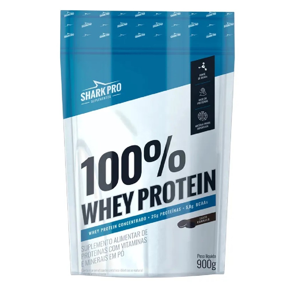 100% Whey Protein Refil 900g – Shark Pro Sobre o produto: O 100% Whey Protein da Shark Pro é um suplemento alimentar à base de proteína concentrada do soro do leite, ideal para quem busca performance, recuperação e desenvolvimento muscular. Com 26g de proteínas por porção e 5,8g de BCAAs, este suplemento possui alto valor biológico e é enriquecido com vitaminas B6 e B12, essenciais para o metabolismo energético e síntese de proteínas. Sua fórmula avançada também conta com glutamina e um mix de vitaminas e minerais que favorecem a recuperação e a imunidade. Apresenta sabor suave, textura cremosa e excelente solubilidade, sendo uma excelente opção para complementar dietas com foco em ganho de massa magra e melhor desempenho nos treinos. Como consumir - Diluir 2 dosadores (40g) em 250ml de água gelada ou na bebida de sua preferência. - Consumir uma vez ao dia ou conforme orientação de nutricionista ou médico. - Pode ser utilizado após o treino, no café da manhã ou entre as refeições principais. Benefícios - 26g de proteína por porção - 5,8g de BCAAs – leucina, isoleucina e valina - Enriquecido com vitaminas B6 e B12 - Adição de glutamina, que auxilia na recuperação muscular - Contribui para o ganho de massa magra e melhora da performance - Excelente solubilidade e sabor agradável - Complementa a ingestão proteica diária Alergênicos: Contém derivados de leite.Pode conter traços de soja e ovo.Contém lactose.Não contém glúten Ingredientes: Proteína concentrada do soro de leite, glutamina, mix de vitaminas (acetato de retinol, mononitrato de tiamina, riboflavina, niacinamida, pantotenato de cálcio, cloridrato de piridoxina, cianocobalamina, ácido ascórbico, acetato de tocoferol, D-biotina, ácido fólico, carbonato de cálcio, sulfato de cobre, picolinato de cromo, iodeto de potássio, molibdato de sódio, selenito de sódio), aroma idêntico ao natural de baunilha, edulcorantes sucralose, ciclamato de sódio, acessulfame de potássio, sacarina sódica, corante inorgânico dióxido de titânio. Advertências - Este produto não é um medicamento - Não exceder a recomendação diária de consumo indicada na embalagem - Gestantes, lactantes e pessoas com enfermidades devem consultar um médico ou nutricionista antes de consumir - Manter fora do alcance de crianças - Conservar em local fresco, seco e ao abrigo da luz - Após aberto, manter bem fechado e consumir conforme orientação do fabricante Conclusão: O 100% Whey Protein Refil 900g da Shark Pro é uma escolha estratégica para quem busca aumentar a ingestão proteica com qualidade e eficiência. Sua formulação com alto teor de proteína, BCAAs, glutamina e vitaminas contribui significativamente para o ganho de massa muscular, melhora na recuperação e maior rendimento nos treinos. Um suplemento versátil e funcional, indicado para atletas e praticantes de atividades físicas que desejam resultados reais de maneira segura e prática.