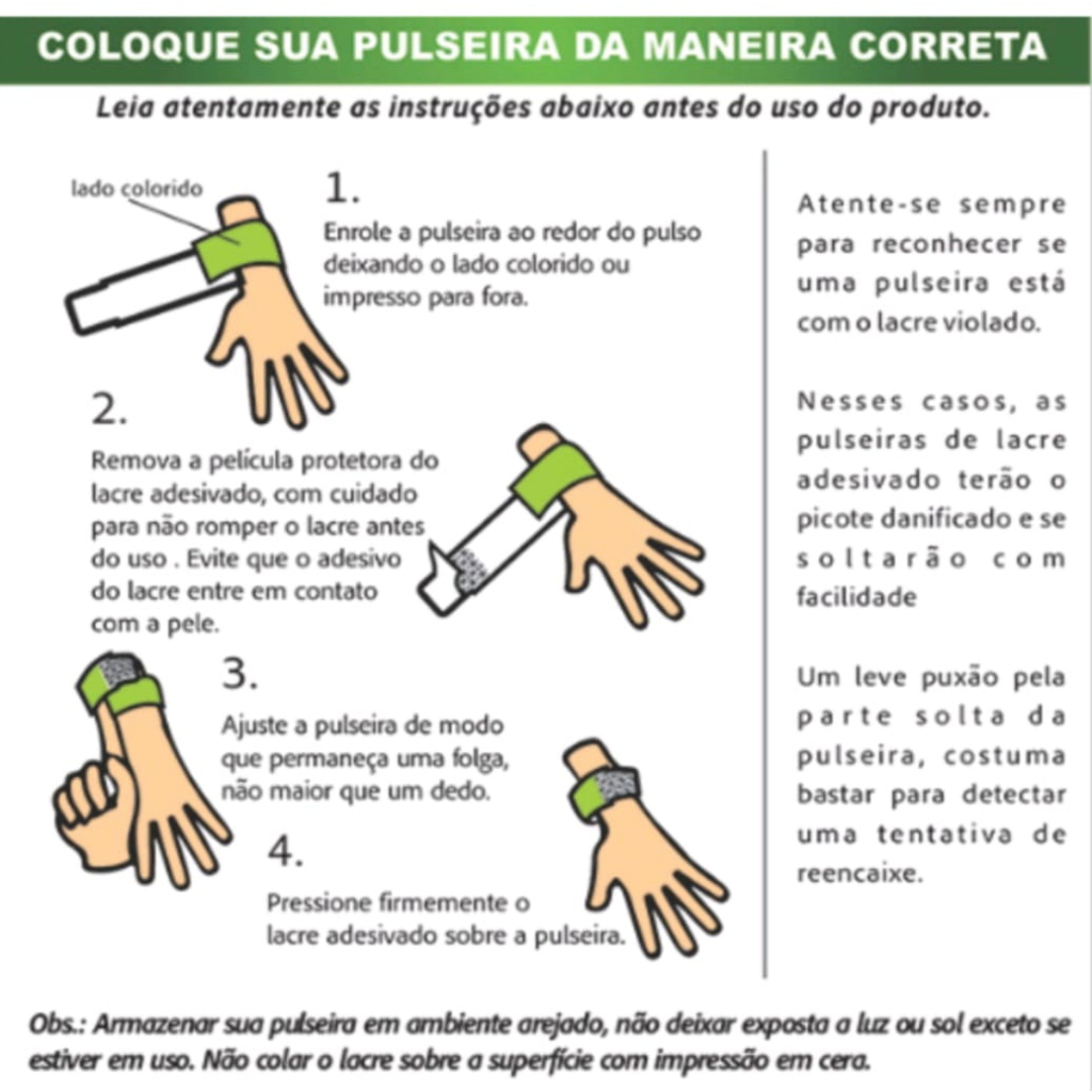 Pulseiras Sintéticas Pode escolher todas da mesma cor: amarela, verde, azul, vermelha DESCRIÇÃO DO PRODUTO Plástico Sintético Super Resistente À prova D'água Fácil aplicação Lacre adesivo inviolável Produto de alta qualidade Melhor custo beneficio Se for imprimir... Apenas em Silk | Serigrafia