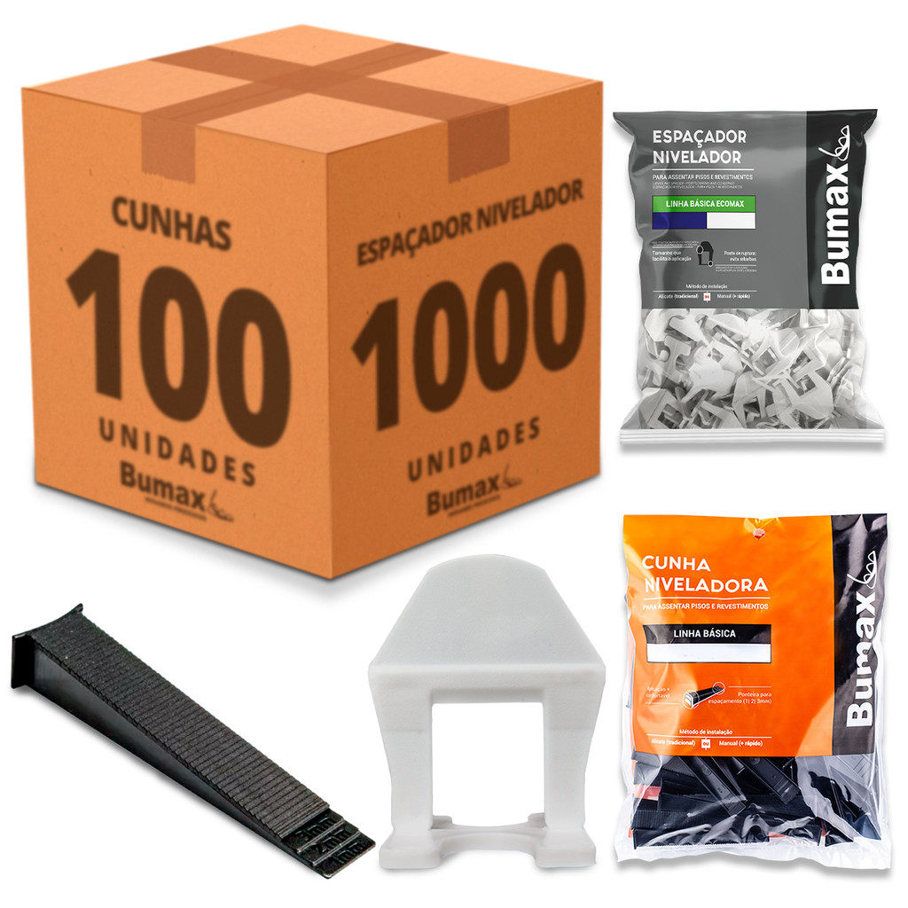 1000 Espaçadores Nivelador Piso + 100 Cunhas Slim Revestimento Azulejo Cerâmica Porcelanato