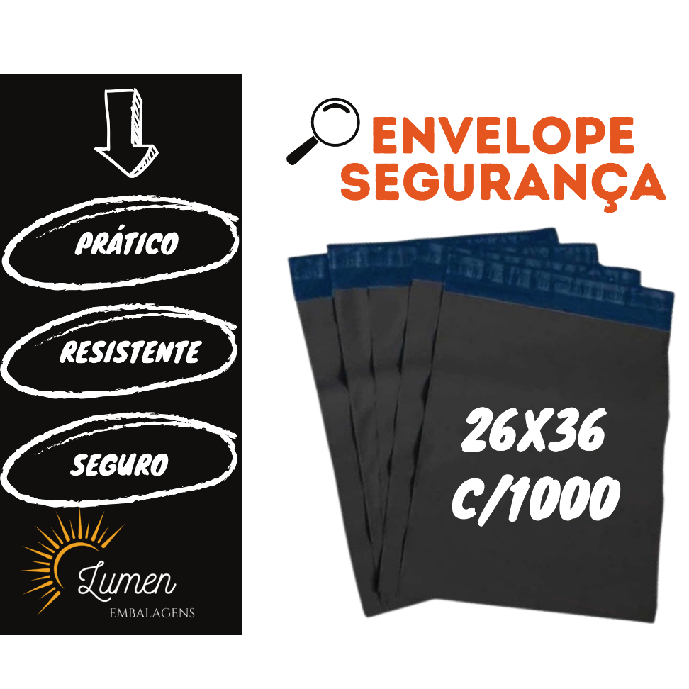 1000 Unid. Envelopes Ecommerce 26x36 - Saco Embalagem Para Correio Ecommerce - Envelope Segurança
