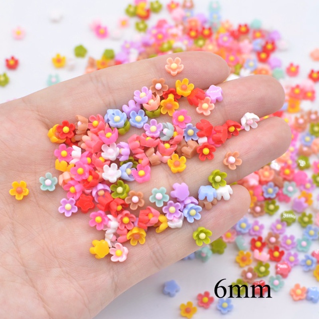 100Pcs Mini 6mm Manicure Flor Lótus Daisy Resina Ornamento Artesanato Brinco Decorações Fornecimento DIY Nail Art