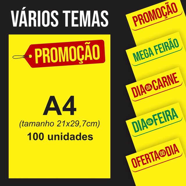 | Kit 100un. Cartaz A6, A5, A4 ou A3 Oferta, Promoção, Supermercado, ... | R$ 16,39 | 3% | 4.8/5 | 352 |