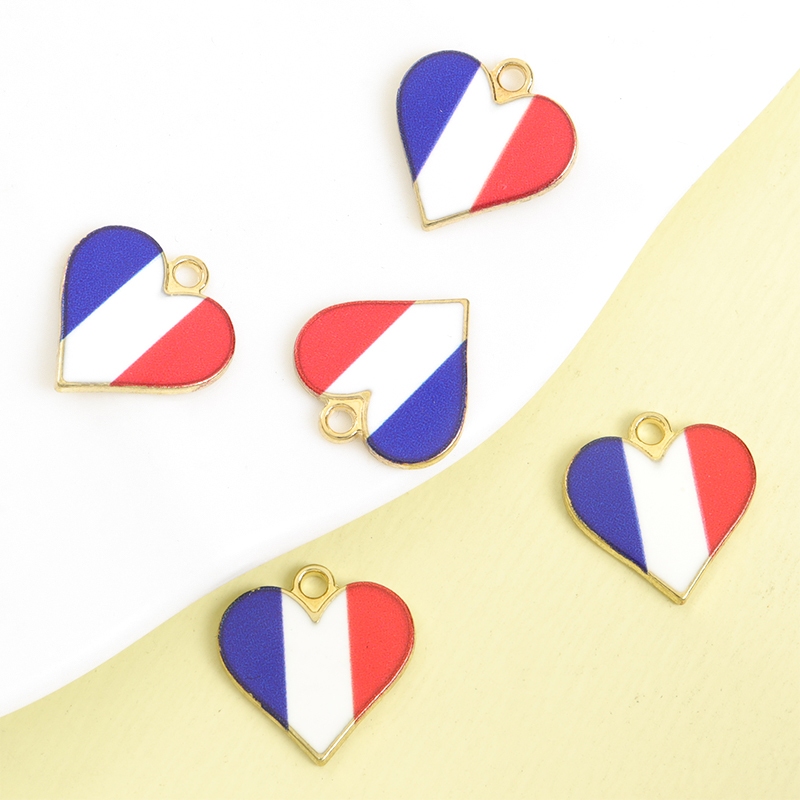 10pcs Bandeira Multi-País Padrão De Esmalte Coração Encanta Jóias DIY Para O Dia Da Independência Ou Qualquer Feriado