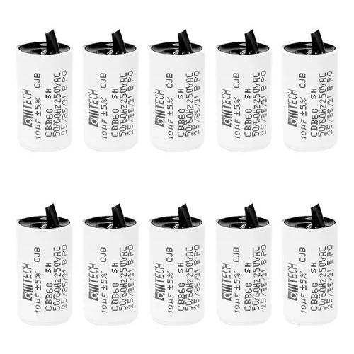 10pcs Capacitor 10uf 250vca Motores Portão 2 Fios Permanente