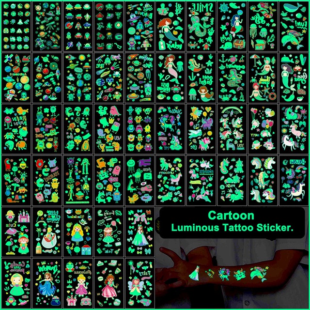 10pcs/set Autocolante De Tatuagem Luminosa Infantil Dinossauro Fada Da Flor Sereia Presente Sorte Para Meninos E Meninas