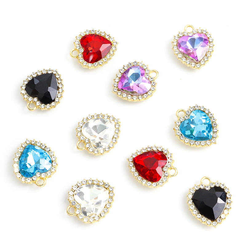 10pcs Vintage Europeu Pêssego Coração Rhinestones Encanta Jóias Estilo Princesa Acessórios De