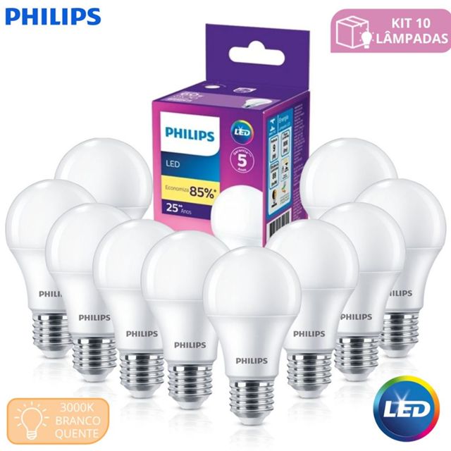 | 10x Lâmpadas LED Philips Bulbo 9W 3000K E27 | Luz Quente Bivolt p/ ... este produto | R$ 152,27 | — | 4.9/5 | — |