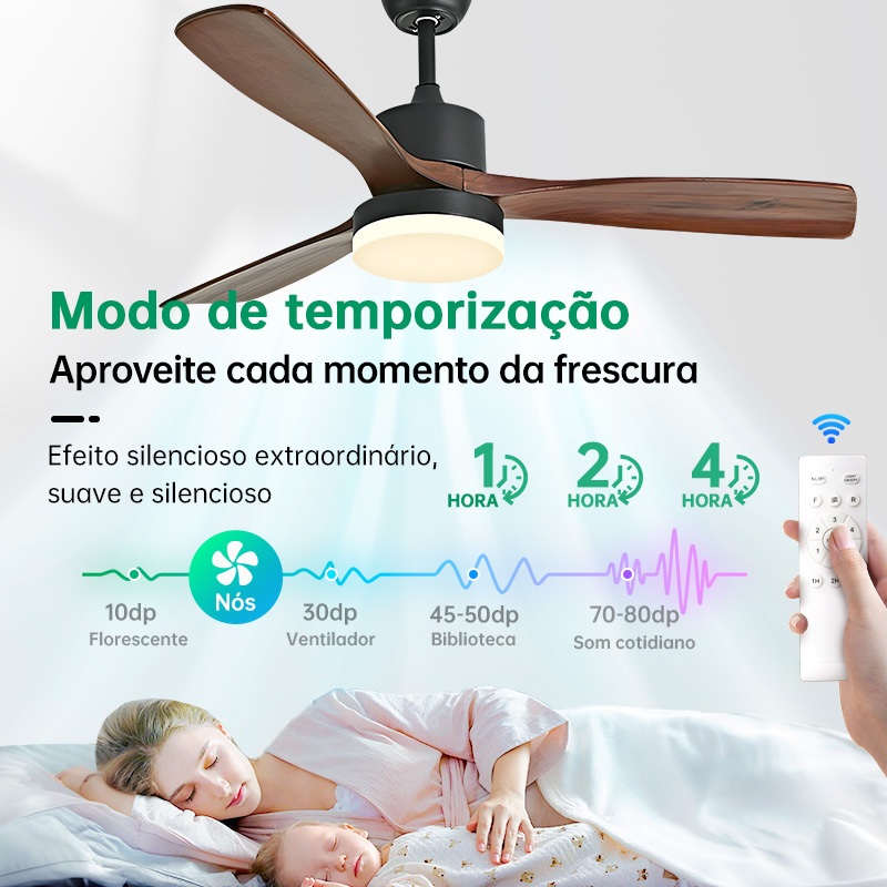 110V-220V Ventilador de Teto com Lâmpada e com Controle 42/48/52in Motor CC Reversível Silencioso 3 Cores em 1 Bivolt 11