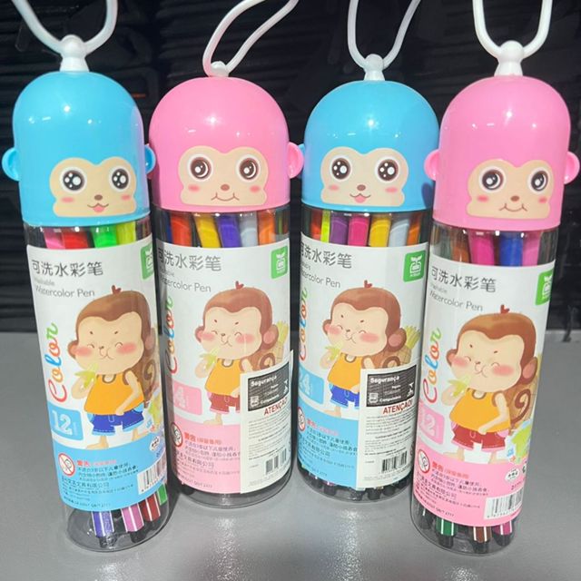 12/24 Cores Caneta Aquarela Lavável Canetinha hidrografica Estampa MACACO