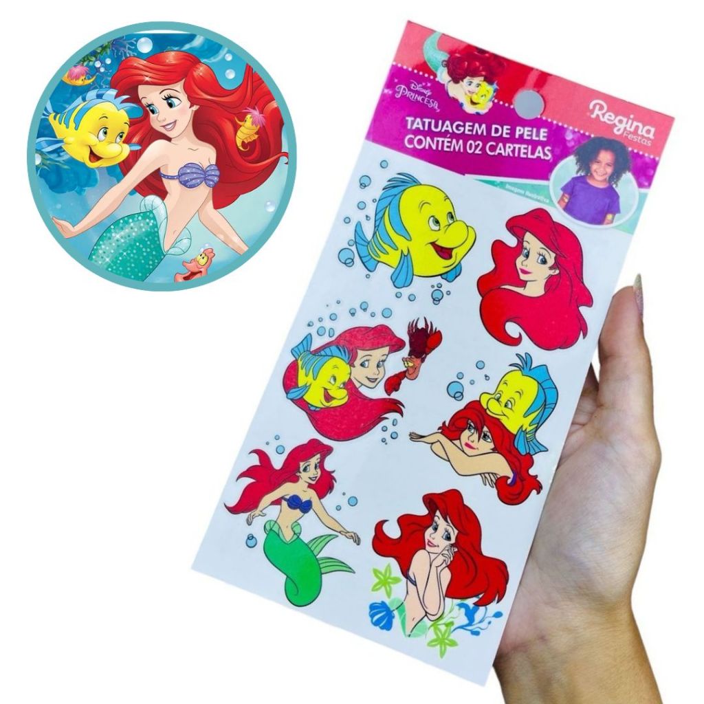 12~48 TATUAGEM DE PELE DISNEY FESTA ARIEL Regina