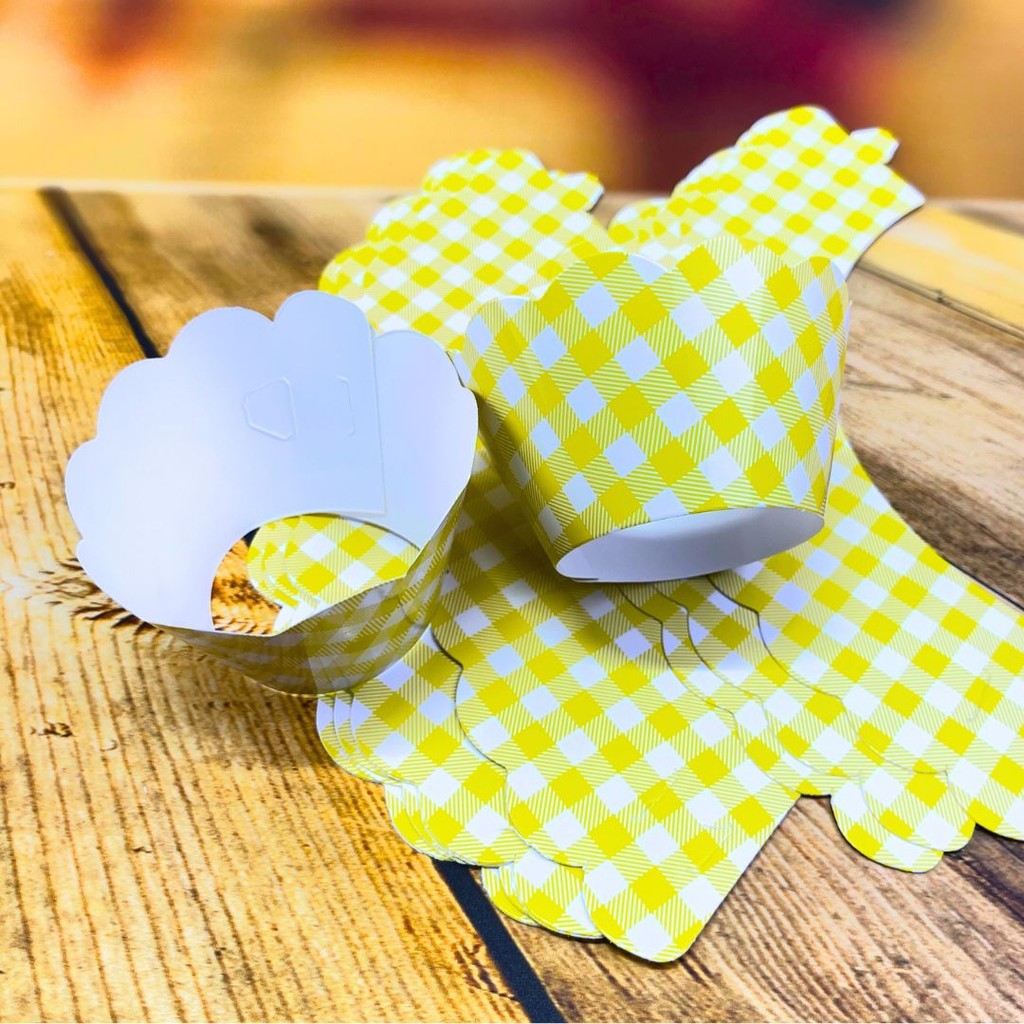 SAIA PARA CUPCAKE XADREZ AMARELO A 50mm, C 220mm Disponível 2 ajustes no diâmetro SOLAPA C/ 12 UNIDADES