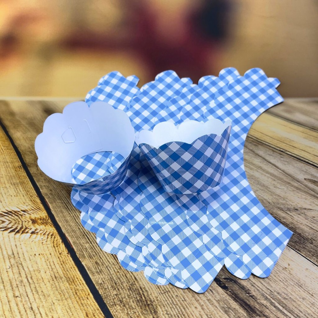 12~60 SAIA PARA CUPCAKE, AZUL XADREZ - FESTA JUNINA