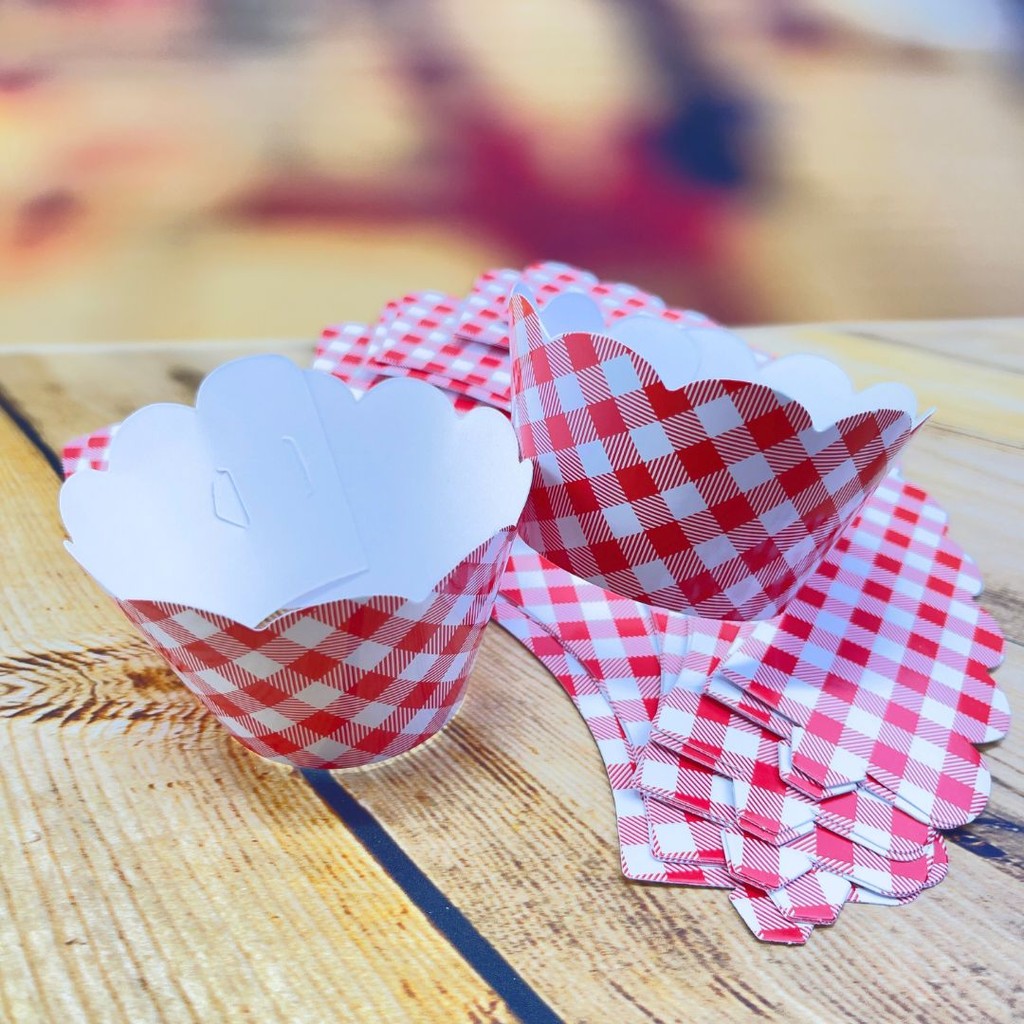 SAIA PARA CUPCAKE XADREZ VERMELHO A 50mm, C 220mm Disponível 2 ajustes no diâmetro SOLAPA C/ 12 UNIDADES