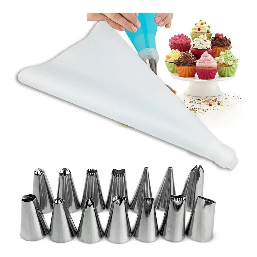12 Bicos Confeitar Bolo Doce + Acoplador + Saco Confeiteiro -KS