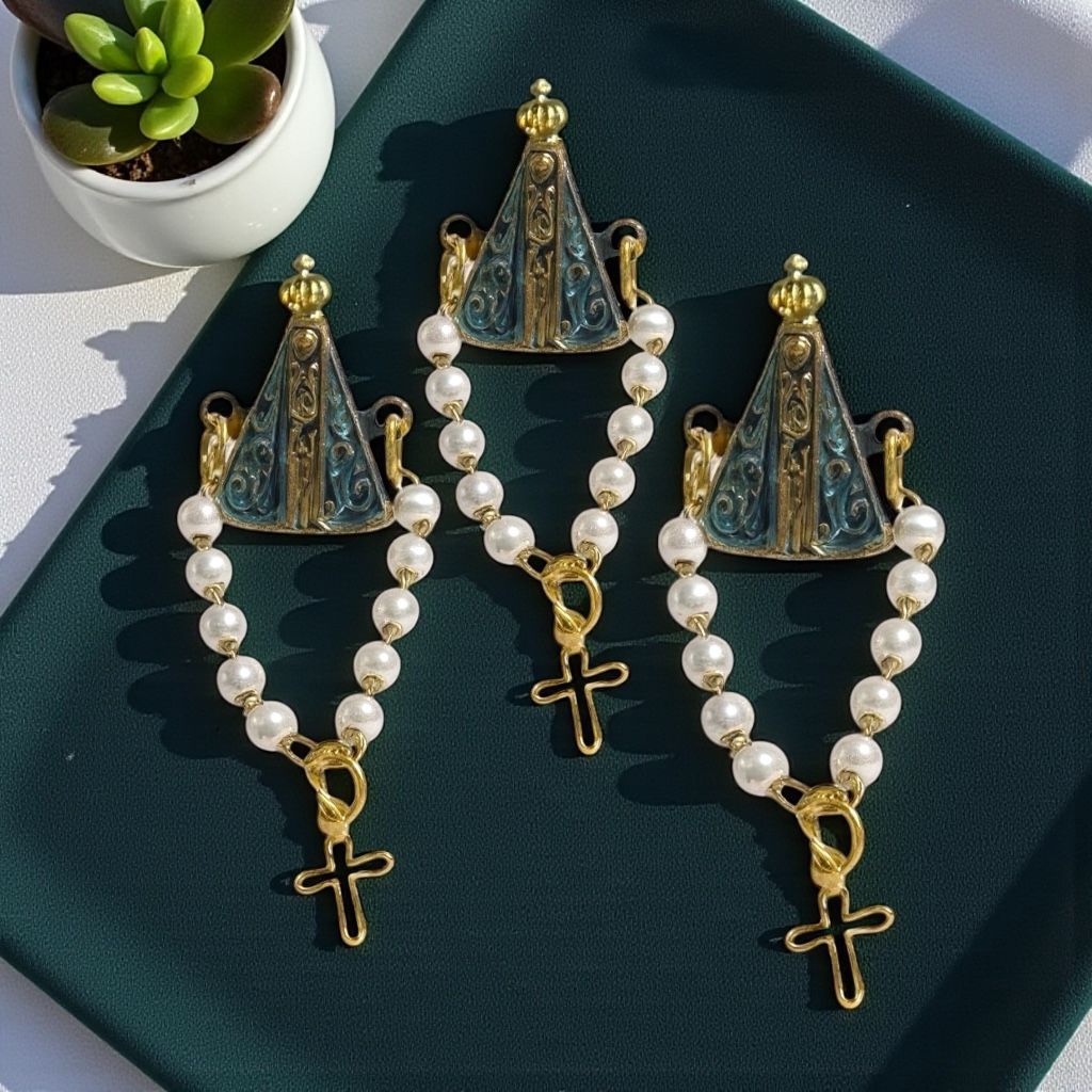 12 Broche Bonton Nossa Senhora Aparecida Paz Terço Pérola