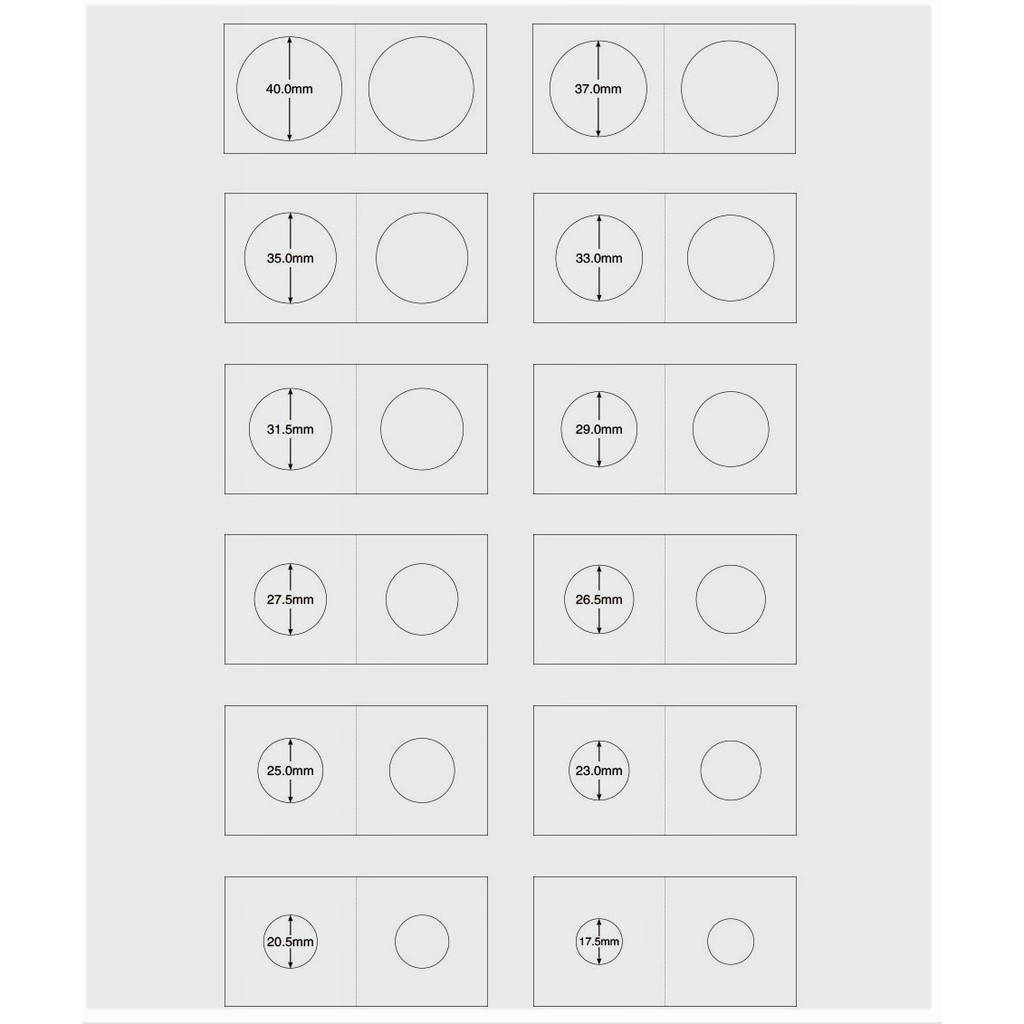12 Caixas de Coin Holder ( cada Caixas Possui 50 unidades) Total de 600 coin holder Os Coin Holders são usados para organizar e armazenar as moedas da sua coleção, protegendo a moeda do desgaste, sendo por manuseio ou ação natural do tempo. Será enviado um tamanho de cada medida 17,5mm - 20,5mm - 23mm - 25mm - 26,5mm - 27,5mm - 29mm - 31,5mm - 33mm - 35mm - 37mm - 40mm Pode ser alterado no pedido o tamanho da caixa , basta enviar mensagem do tamanho que deseja Produto pronta Entrega, com Garantia e Com Nota Fiscal Características - Fabricante: Organizer - Tamanhos do Holder: 5 cm x 5 cm - Cor: branco - Fixação: Por Grampo (OBS: Não é auto colante)