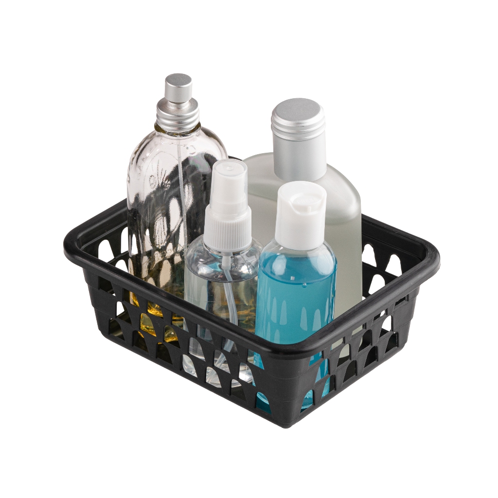 Cesto Organizador Multiuso Preto Para Quarto Lavanderia Banheiro: Largura: 12 cm Profundidade: 16 cm Altura: 06 cm Medidas sem as bordas (somente fundo): Largura: 11 cm Profundidade: 13 cm Peso: 32 Grs Material: Plástico Reforçado (vazado). Garantia do vendedor: 7 dias