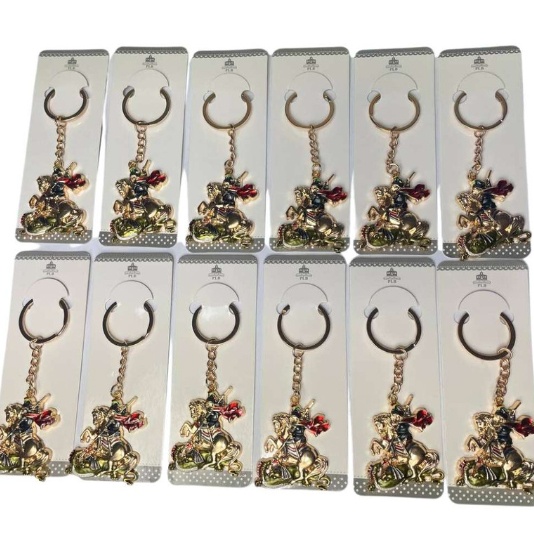 12 Chaveiro São Jorge Metal Inox Colorido Dourado Com Corrente