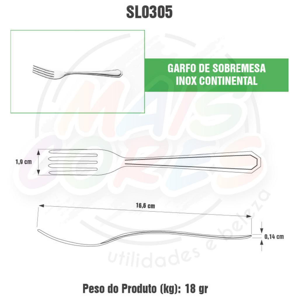 Faqueiro em aco inox Sobremesa com 36 pecas Talheres elegantes com designe moderno, enriquece a mesa posta. Ideal para variados Momentos. Kit Talheres Ficha tecnica kit faqueiro: 12 Colheres de Sobremesa (3,8x16,5cm) Espessura do cabo 1,4mm, peso por peca 0,031Kg. 12 Garfos de Sobremesa (1,9x16,6cm) Espessura do cabo 1,4mm, peso por peca 0,018Kg. 12 Facas de Sobremesa (1,7x18,3cm) Espessura do cabo 2,0mm, peso por peca 0,027Kg. Marca : Original Line Modelo: Linha Continental Produto com Nota Fiscal a pronta entrega. Aguardamos sua compra!! Mais Cores Variedades, entregando o melhor para sua casa!