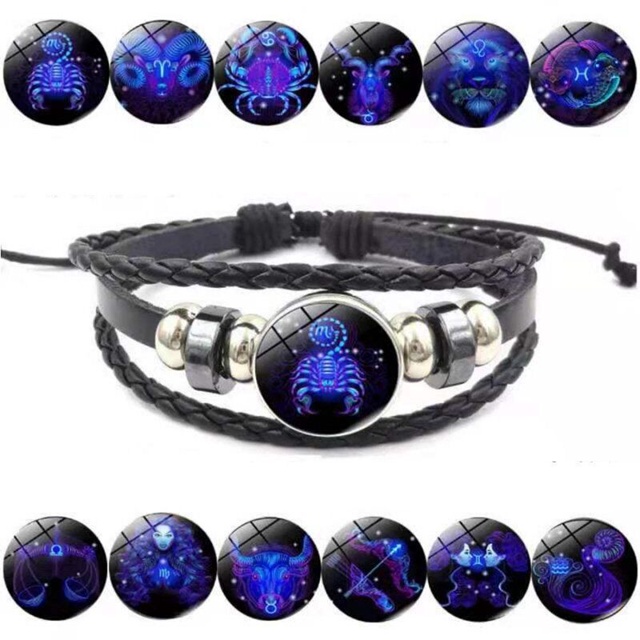 12 Constelação Pulseira Luminosa De Couro Zodiac Sign Signos Trançado Brilho No Escuro Unisexo Joalheria Presente