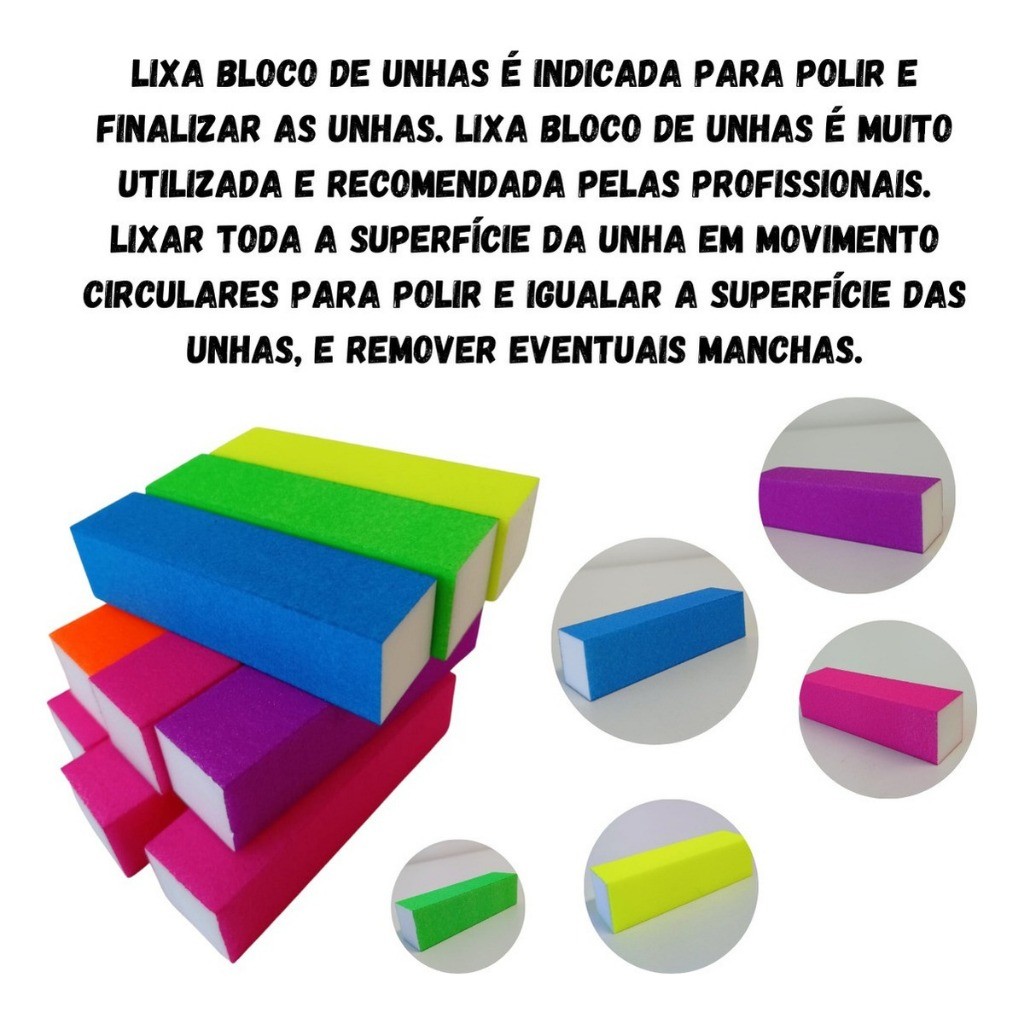 A Lixa Bloco para Polimento é ideal para modelar, polir e dar acabamento as unhas . Seu formato em bloco auxilia no polimento das unhas, deixando-as perfeitas para o próximo passo, sendo uma das mais recomendadas pelos profissionais para um acabamento perfeito! ATENÇÃO CORES ALEATÓRIAS!!