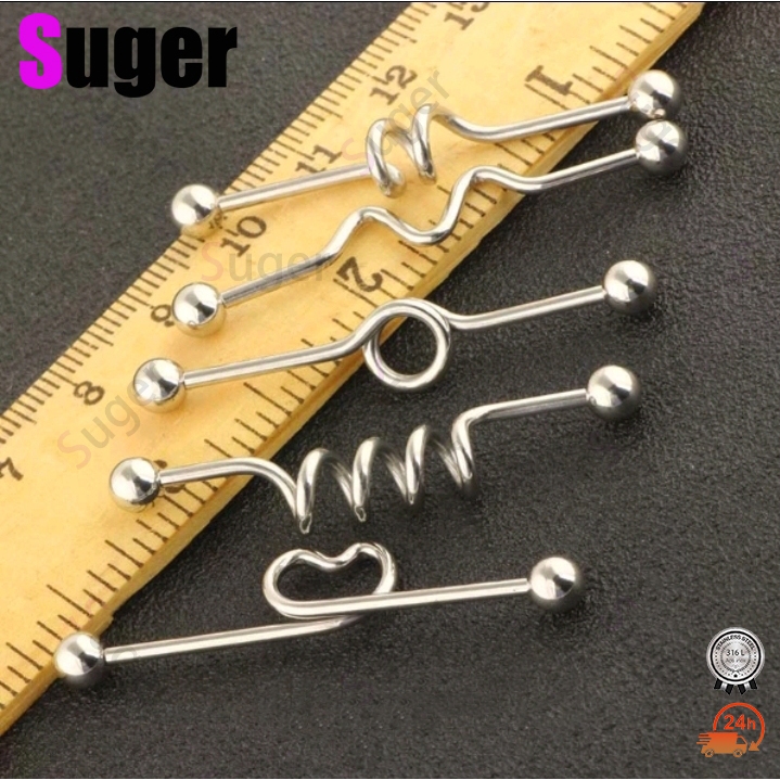 * Tipo de jóias do corpo:Cartilagem Brincos industriais * Material: aço inoxidável * Tamanho: (14g) 1.6*38*5/5mm * Peso: 20 g/saco * Cor: prata * Quantidade: 12 pces * Nota: Pode haver uma pequena diferença de cor de acordo com a luz diferente, monitor diferente. por isso, se caro você não pode aceitar esta diferença muito pequena, seja cauteloso antes de fazer os pedidos.