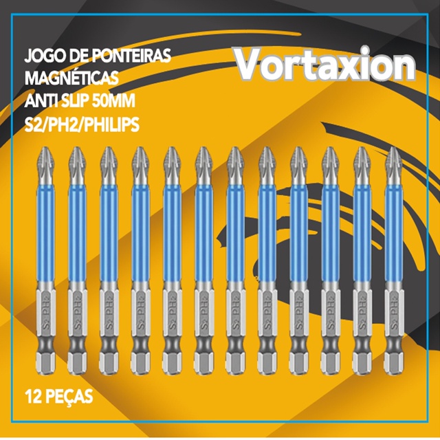 12 Peças Anti-Derrapante -Jogo de Bits de Chave Phillips Magnético Impacto