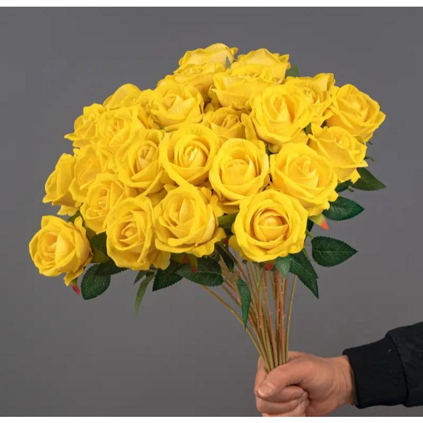 12 Rosas Artificial Amarela Aveludada Individual Dia Das Mães Decoração Arranjo Flor