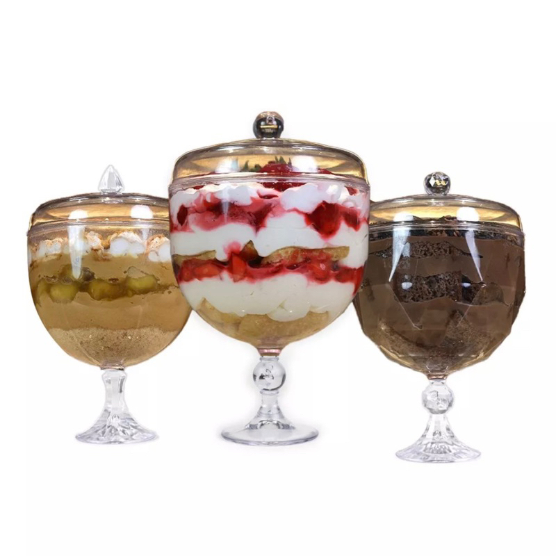 12 TAÇAS DE ACRÍLICO AMERICANA DIAMANTE 1.250ML COM TAMPA – TAÇA TRANSPARENTE BLUESTAR PARA DOCES E SOBREMESAS