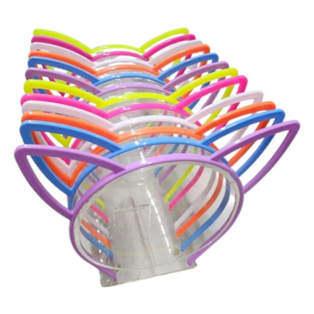 Tiara Gatinho Color Plástico Para quem adora enfeitar os cabelos com acessórios fofos, a Tiara Gatinho Color é o acessório perfeito para qualquer princesa, O design leve e confortável fica ótimo em sua cabeça e permite que você aproveite seu tempo com estilo e o melhor, sem machucar atrás da orelha. Pode ser usada também com complemento em fantasias, na hora das brincadeiras das pequenas, deixando-as fofas e tornando a brincadeira ainda mais divertida. **** ATENÇAO !! A OPÇÃO BRANCA OU TRANSPARENTE SERÁ ENVIADA CONFORME ESTOQUE DISPONÍVEL **** USO: Ideal tanto para crianças, quanto para os adultosTAM: Único (Indicamos para a partir de 4 anos)MATERIAL: Plástico **** KIT COM 12 TIARAS COLORIDAS****