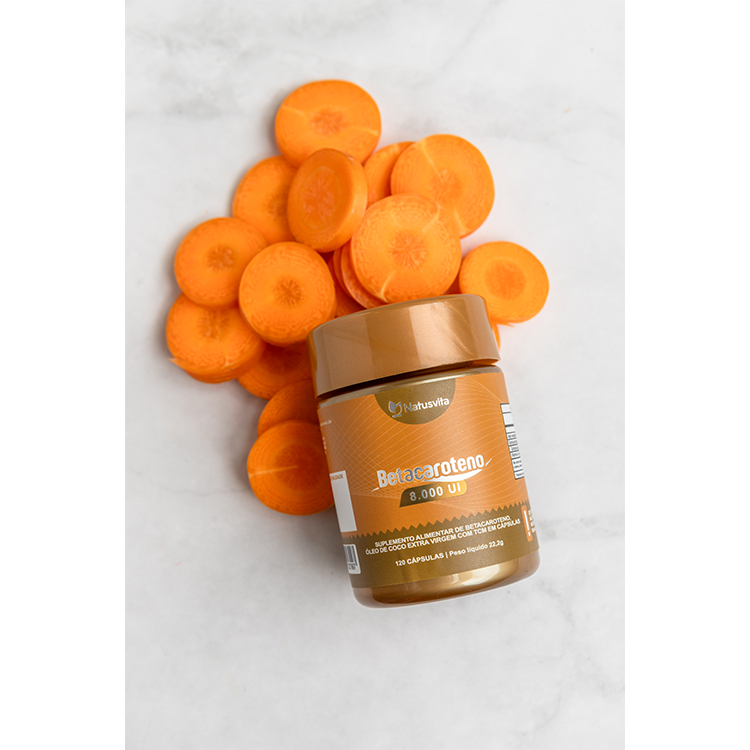 ALERTA: Não se deixe enganar, sempre verifique a concentração de Betacaroteno. Há marcas que oferecem apenas 1.000 UI de Betacaroteno na porção. Aqui você encontra 8.000 UI em uma cápsula, ou seja: 8 vezes mais concentrado. O Betacaroteno em cápsulas da NatusVita é um suplemento a base de Betacaroteno que oferece atividade de Vitamina A equivalente a 8.000 UI. O Betacaroteno é um tipo de carotenoide precursor da vitamina A pela capacidade de ser convertido em retinol pelo organismo. O Betacaroteno também tem ação antioxidante, assim como outros carotenóides. Sua principal ação antioxidante é ser o mais importante neutralizador do oxigênio singlete que pode causar danos nas células e no DNA. VANTAGENS DESTE PRODUTO: Produto natural; Possui 8.000 UI em apenas uma cápsula; Não possui corante ou aditivos químicos; Não contém açúcar; Possui atividade pró Vitamina A. INFORMAÇÃO NUTRICIONAL Valor Energético = 0Kcal = 0Kj Vitamina A = 2.400 mcg RE / 400% V.D. (8.000 UI) COMPOSIÇÃO: Betacaroteno. MODO DE USAR: Consumir 01 (uma) cápsula ao dia ou conforme orientação de seu médico ou nutricionista. APRESENTAÇÃO: 120 cápsulas por embalagem. VALIDADE LONGA: Validade dois anos. SEGURANÇA PLENA: VOCÊ ESTÁ ADQUIRINDO DIRETAMENTE DA FÁBRICA. PRONTA ENTREGA. ENVIO IMEDIATO. GARANTIA DE 30 DIAS.