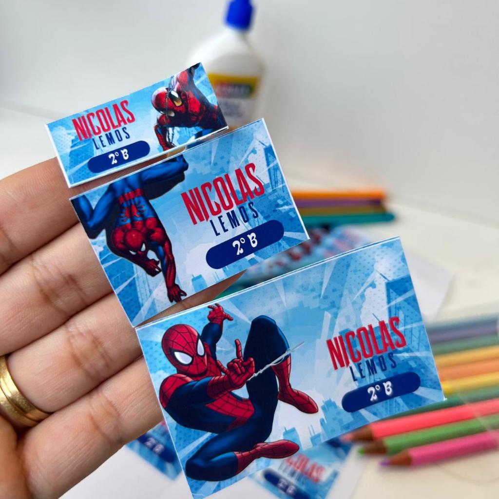 120 Etiquetas a prova d' água personalizado com nome e serie etiqueta escolar menino homem aranha super heroi spider man