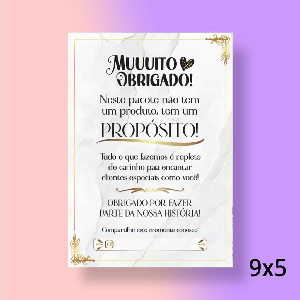 LEIA COM ATENÇÃO : NÃO FAZEMOS NENHUMA ALTERAÇÃO, NÃO CRIAMOS ARTE, E NEM FAZEMOS SUA ARTE PRONTA Quantidade: 120 unids. Medida: 9x5cm Impressão frente Papel OffSet 180g - ESCOLHA O MODELO NO ATO DA COMPRA - CASO O CLIENTE NÃO INFORMAR O arroba no ato da compra (em até 1h ) PARA PERSONALIZAÇÃO, O PRODUTO SERÁ ENVIADO NO MODELO PADRÃO, se enviar com atraso (se enviar após 1h da compra não colocaremos seu arroba) - NOS NÃO CHAMAMOS PRA PEDIR o arroba - NÃO COLOCAMOS arroba diferentes ( de 2 ou mais lojas), NA MESMA COMPRA ( INDEPENDENTEMENTE DA QUANTIDADE COMPRADA) , favor se atentar a isso tbm ! FAVOR ATENTAR-SE AO TAMANHO ESPECIFICADO NA DESCRIÇÃO DO PRODUTO E AO PRAZO DE ENVIO