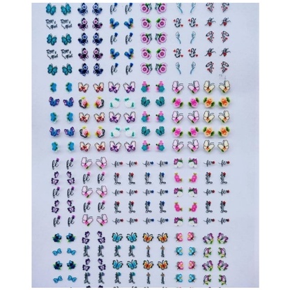 sao 5 cartelao pre pronto (PRECISA FINALIZAR COM BASE ). Enviaremos modelos variados sortido com a qualidade da Bonita adesivos!!!!! No Kit vai maioria flores e borboletas variadas!!!Cada cartelao vai 240 desenhos. Os 5 cartelao vai 1200 desenhos! Equivale a 600 pares de adesivos