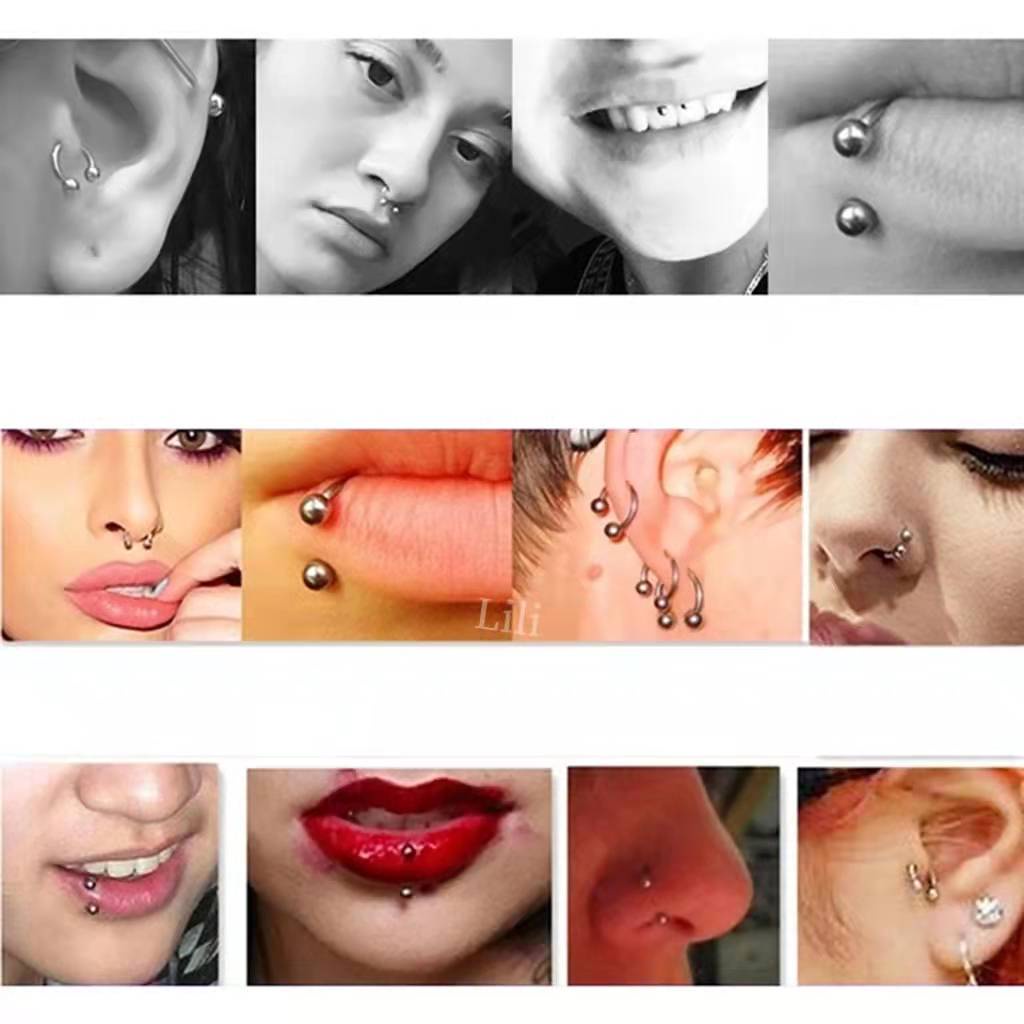 120Pçs Piercing aço cirúrgico perfurado língua sobrancelha umbigo ferradura nariz lábio anel brinco jóias do corpo