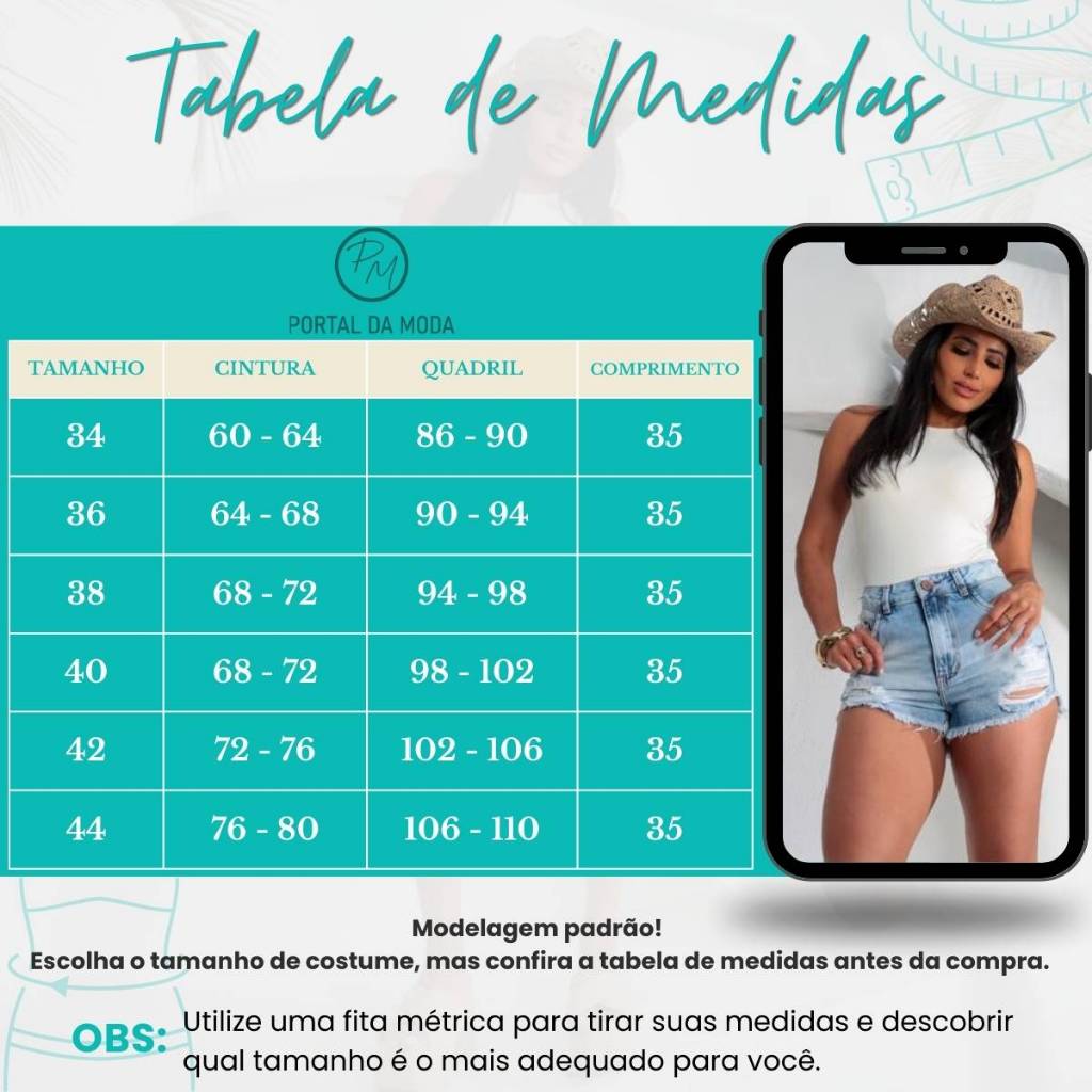 Recomendações de Tamanho Modelagem padrão – Indicamos o tamanho que você já está acostumada a vestir. Tamanho 34 → veste como 34 Tamanho 36 → veste como 36 Tamanho 38 → veste como 38 Tamanho 40 → veste como 40 Tamanho 42 → veste como 42 Tamanho 44 → veste como 44 Para garantir um caimento ideal, recomendamos que compare as medidas informadas com alguma peça semelhante que você já tenha em casa. CARACTERÍSTICAS Modelo: Shorts Jeans Hot Pants Destroyed Altura do Gancho: Cintura alta - Cós alto Vestibilidade: Despojado no corpo Bolsos: Dianteiros e Traseiros Funcionais Composição: 100% Algodão Os Shorts Jeans Hot Pants Destroyed em lavagem clara são perfeitos para o verão. Com detalhes desfiados e rasgos, eles oferecem um estilo descontraído e moderno. Fáceis de combinar com camisetas e sandálias, são ideais para passeios e encontros casuais. Confortáveis e na tendência, são uma peça essencial para o seu guarda-roupa! OBSERVAÇÕES: Shorts sem elastano, com caimento firme e ótimo ajuste ao corpo. Ficou com dúvidas? Chama a gente! Teremos prazer em te ajudar a escolher o tamanho ideal ❤️ PARA REFERÊNCIA: A modelo está usando o tamanho 38 e tem 1,70cm de altura. ATENÇÃO: A tonalidade do jeans pode variar conforme a tela usada para visualização, por se tratar de fotos externas e de estúdio.