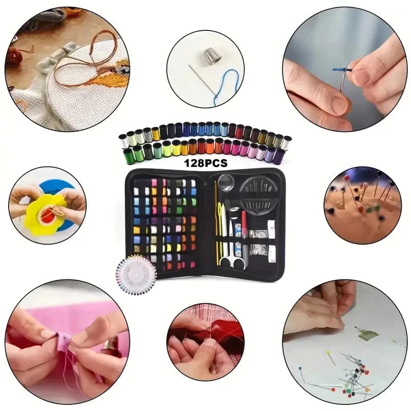 128pçs Kit De Costura Portátil Para Viagem Em Casa Ferramentas Profissional De Emergência